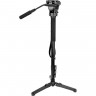 Эта модель интересна тем, что имеет профессиональную штативную головку с жидкостными демпферами. Ее можно наклонять вверх и вниз и поворачивать в горизонтальной плоскости на 360°. Управление штативной головкой осуществляется при помощи удобной ручки управления. Также монопод можно отклонять вбок на угол до 18°, так как опора имеет шаровое соединение с ножками. Сами ножки складные и при необходимости могут быть убраны.